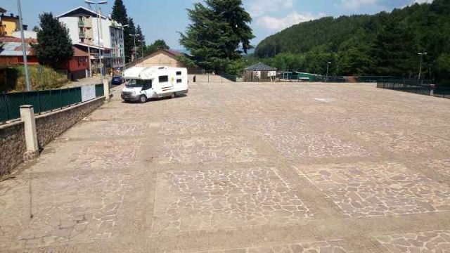 Sulla Sila in centro al paese, punto sosta misto auto a pagamento, asfaltato, presenti WC pubblici, nessun altro servizio camper.