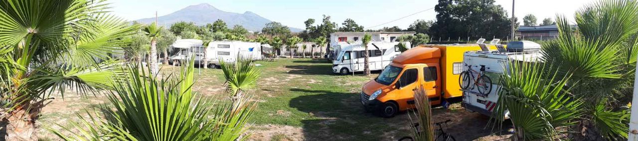 Dovevamo rimanere 3 giorni ma di giorno in giorno finivamo con il prolungare la sosta... In posizione appartata, con una passeggiata di 15/20 minuti si arriva al centro di Pompei dal quale è possibile, con i mezzi pubblici, spostarsi in tutta la zona che va da Napoli alla costiera amalfitana e far rientro alla sera in un luogo tranquillo con vista sul Vesuvio dove ci si sente davvero in famiglia! Il valore aggiunto di questa area sono proprio la passione, la cura e la cortesia che ci mettono i proprietari per fare stare bene i loro ospiti. Sempre disponibili e pronti a risolvere problemi anche in un periodo di pienone come quello di Pasqua. A qualsiasi ora bagni pulitissimi e docce calde disponibili. Corrente e acqua sempre disponibili in piazzola. Area giovane che sono convinto verrà ulteriormente migliorata. Consigliatissima.