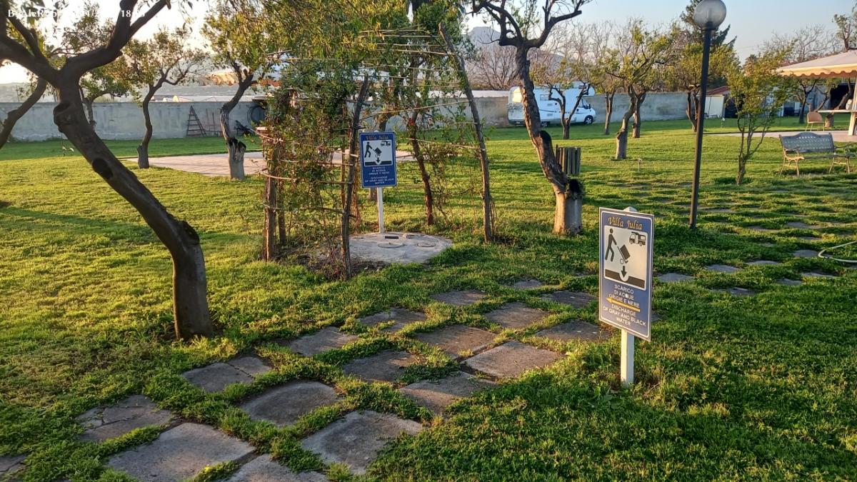 Ottima area sosta, piazzole distinte su erba delimitate da siepi, carico/scarico, allaccio elettrico, docce, bagni, lavelli per stoviglie e panni. Gestori presenti, cortesi e disponibili. Ambiente rurale tranquillo in agrumeto. Ottima vista sul Vesuvio.