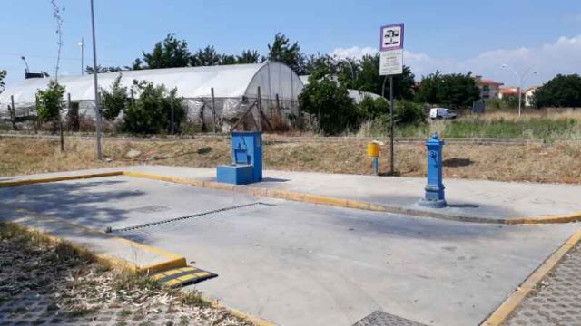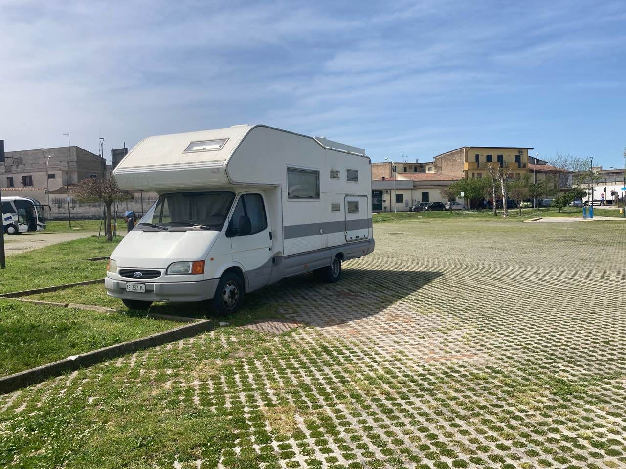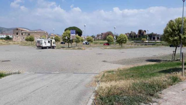 Ampio parcheggio, vicino all'anfiteatro campano, con posti riservati a camper ed autobus, illuminato, gratuito, poco ombreggiato da piccoli alberelli. Carico scarico con due colonnine dell'acqua, una dedicata alla sciacquo del WC chimico.