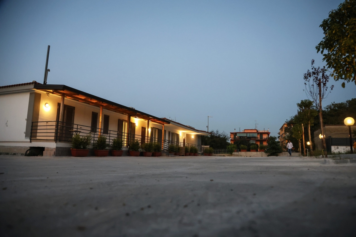 A 500 m dal centro struttura immersa in un parco di ciliegi, dispone di camere e area sosta camper, con allaccio elettrico, carico acqua, scarico acque grigie e nere, servizi igienici. Animali ammessi. A 800 m a piedi dalla stazione metro M1 per Napoli.