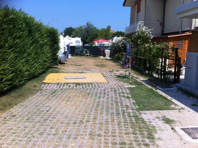 A circa 150 m dal mare con spiaggia libera piazzole su fondo erboso, elettricità, camper service, bagni con docce calde a gettone (fredde gratuite), 2 lavatrici, wifi.