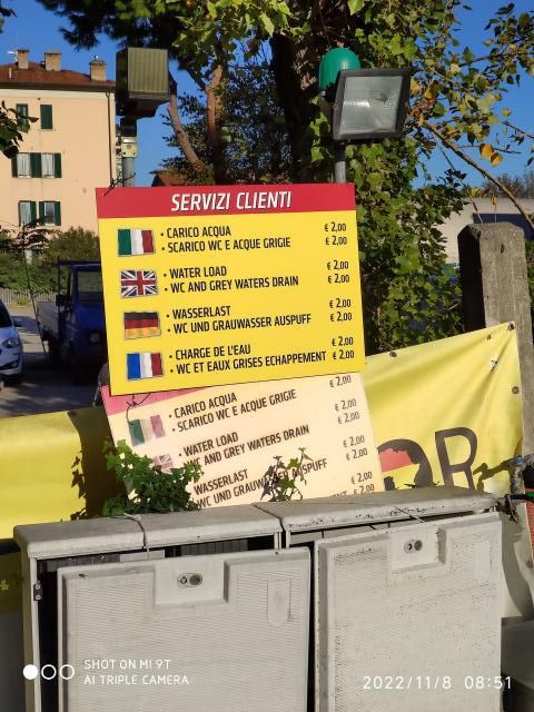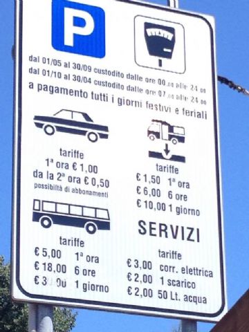- Parcheggio molto comodo per visitare il centro. 13€ solo parcheggio, gli altri servizi a parte, corrente 4€, scarico 2€.