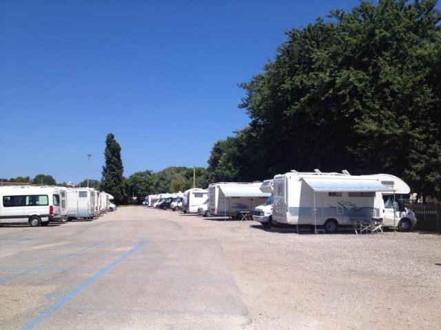 L'area di sosta è stata ridimensionata per probabile decisione del Comune. Ora si sosta sul piazzale esterno asfaltato, dove sostano anche auto, camion e pullman. I prezzi però sono rimasti inalterati. Gli spazi non sono delimitati e nei fine settimana i veicoli sono troppo ammassati. Area rumorosa per il traffico nella vicina arteria. Tutti i servizi si pagano a parte, il costo del solo parcheggio è di 13 € per 24 ore.