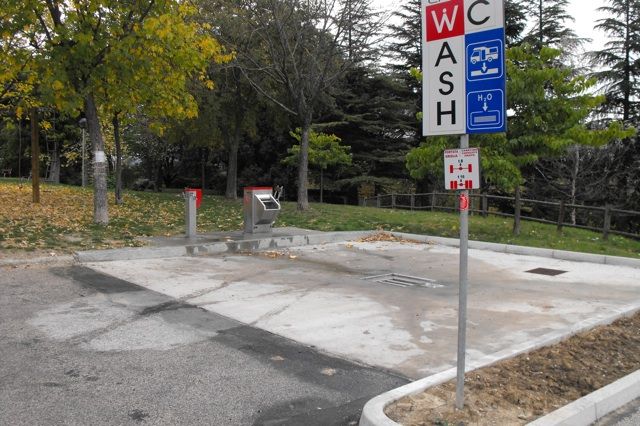 Area molto bella, ampi spazi, prezzo onestissimo: euro 10/24 h. Unico inconveniente la corrente elettrica, utilizzabile solo tramite pagamento con monete e in zona non c'è un cambia monete, per cui consiglio di munirsi di monete.