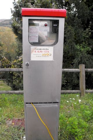 Corrente più costosa della sosta. 50 centesimi all'ora, ma qui le ore non sono di 60 minuti. Con € 6 avrei dovuto usufruire di 12 ore di corrente, ma in realtà la somma è bastata per meno di 10 ore e mezza. Concludendo, costa di più la corrente della sosta.