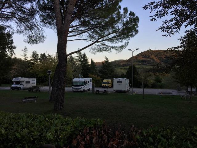 Complimenti agli amministratori locali. Comodissima area di sosta con adiacenti giardini pubblici. Completa di tutti i servizi, spendendo 8 euro al giorno. Vicinissima c'è una pizzeria d'asporto. Ottima area per visitare la rocca, la torre dell'orologio e il santuario passando per la via dei muli. Ottima anche la locanda dove abbiamo cenato senza spendere troppo.