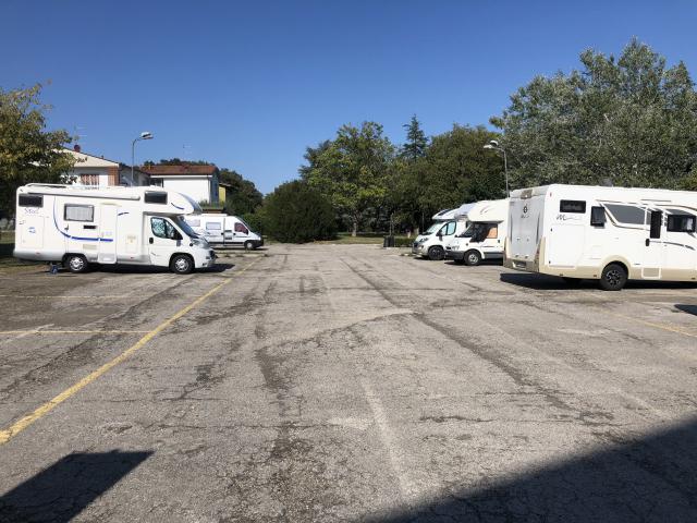 Ottima area sosta. Prezzi: 8€/24h, elettricità 2€/12h, solo carico/scarica 2€. Posizionata a 10 minuti a piedi dal centro da cui partire per la visita alla via degli Asini (stupenda!), alla torre dell'orologio, alla Rocca e al Santuario. Per il cibo? Ma siamo in Italia e in Romagna, ma anche l'Emilia non scherza!