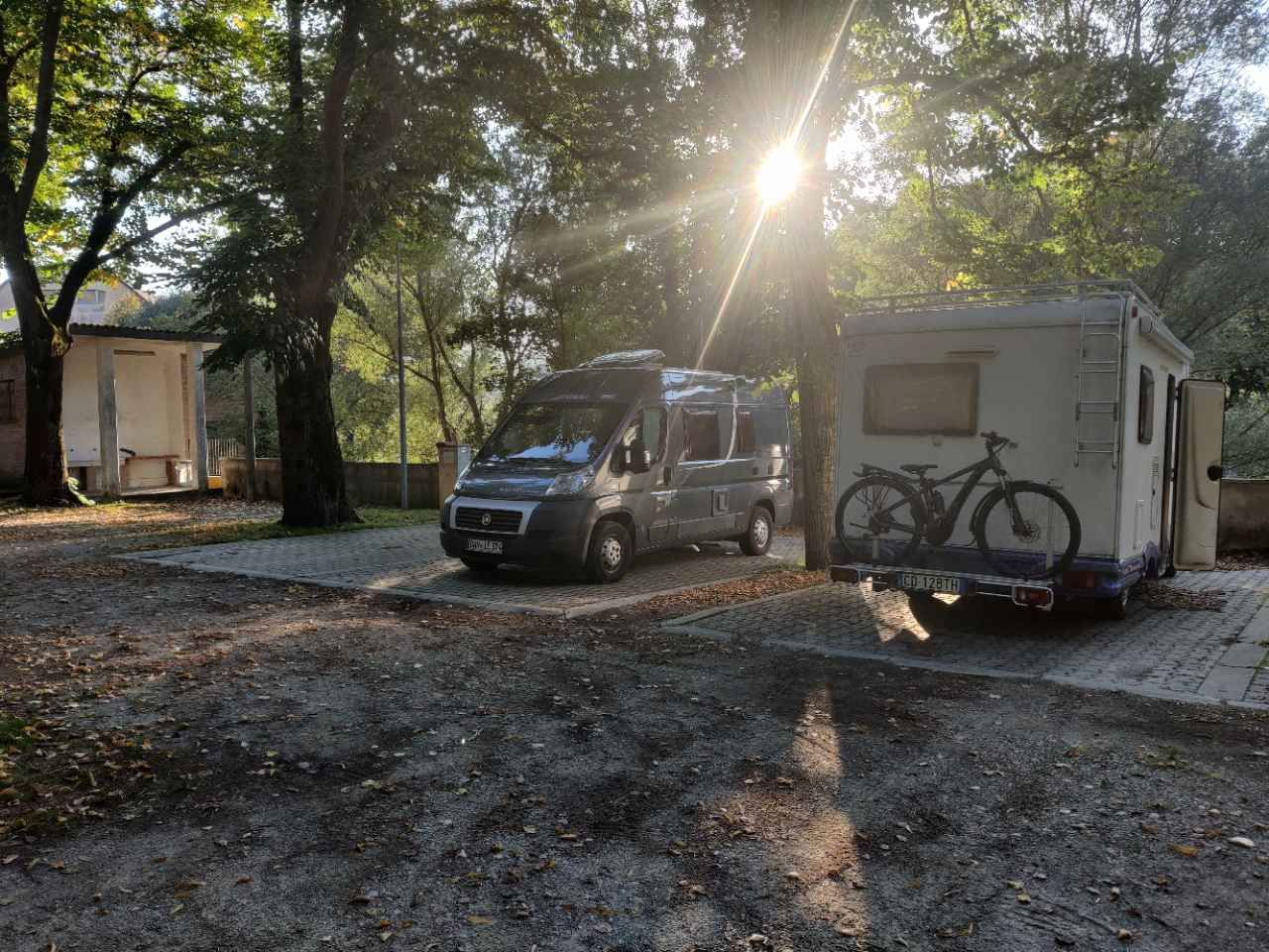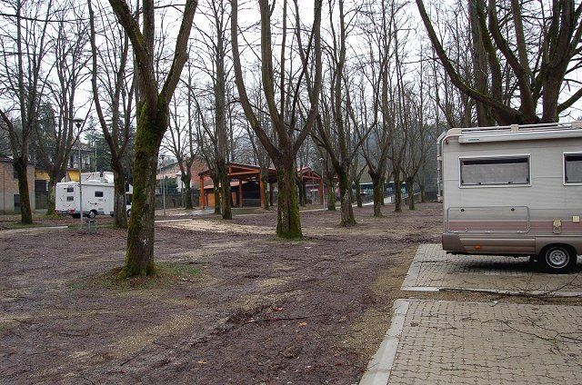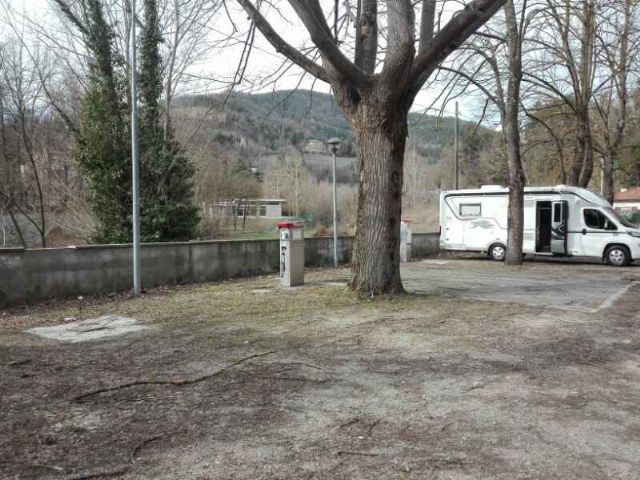 Nel parco Gramsci, nel parking dell'ex Foro Boario sulla strada San Zeno-Galeata, segnalato, 4 stalli per camper, allaccio elettrico, lavandini, CS.