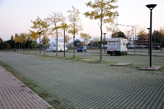 Ampio parcheggio su autobloccanti. Di notte, tranquillo, ma molto isolato. Qualche mezzo presente, non tutti di camperisti, purtroppo.