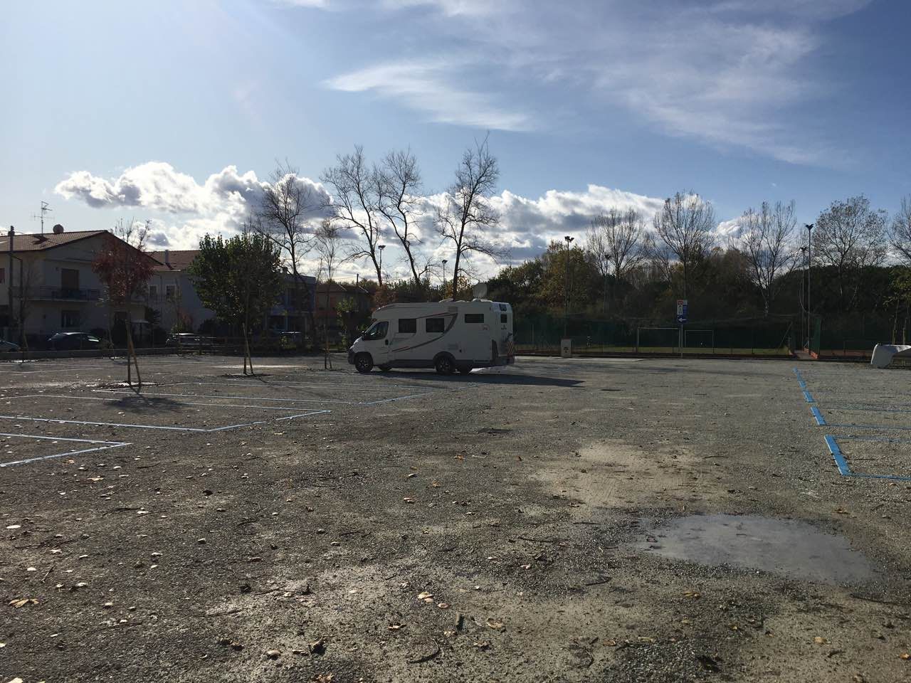 Area pulita, ordinata, C/S comodo, ingresso automatizzato con lettura targa, sosta massima 72h. No corrente, comoda in bici al centro di Cesenatico o Gatteo, zona defilata ma vicina al mare (è la parallela del lungomare). Tariffa 7€ per 24h.