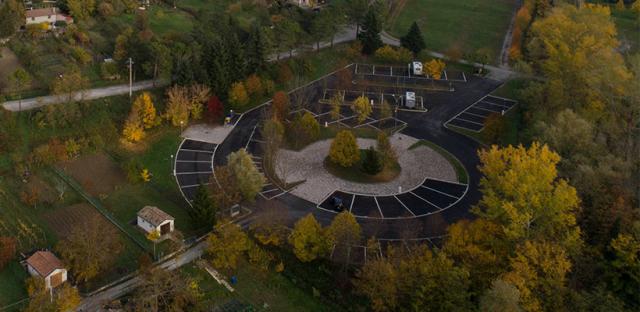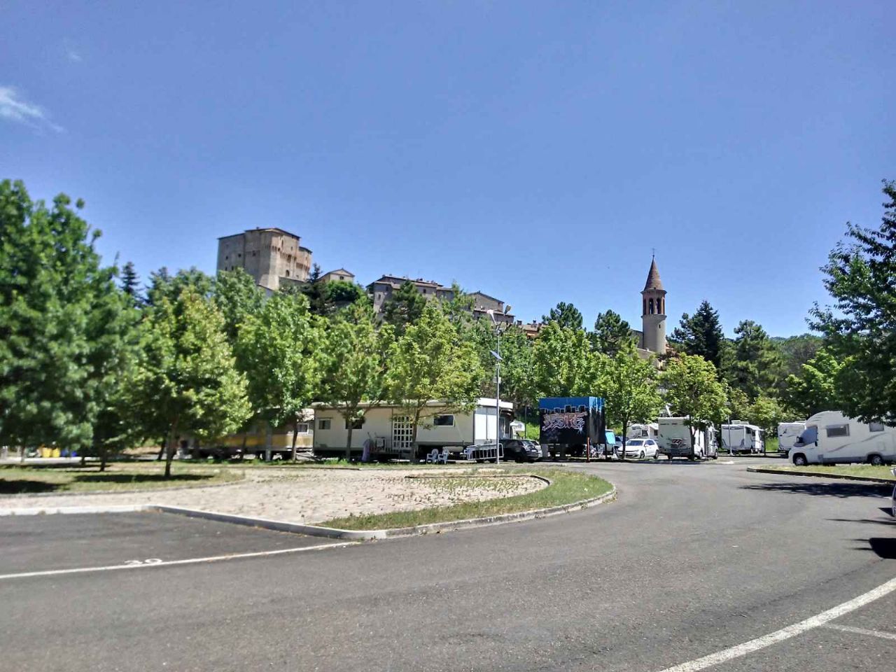 Area sosta con 40 posti camper, immersa nel verde, a pochi passi dal grazioso paesino con Rocca delle fiabe. Molto silenziosa. Alimentari e osteria in piazza.