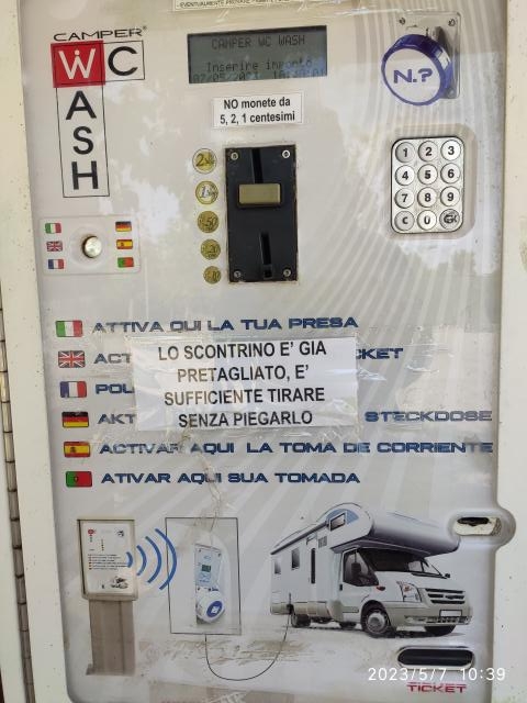 Ottima area sosta ben curata, con molta ombra e stalli molto spaziosi. Comoda e pulita la zona Car Wash. La corrente quest'anno costa 0,40 € all'ora, ma è comodo il fatto di poter scegliere quante ore utilizzarla.