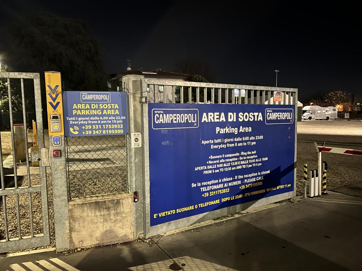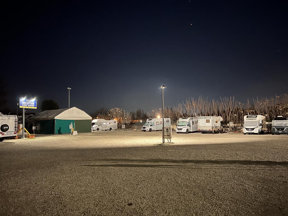 Una delle poche aree rimaste a Bologna. Ci accolgono dicendoci di essere pieni per le prenotazioni e ci danno un parcheggio di fortuna. Alla sera, però, e al mattino seguente, ci sono ancora diverse postazioni libere.