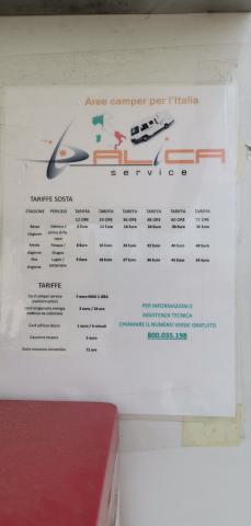 In bassa stagione i costi sono 6€/12h oppure 12€/24h. Corrente 3€/24h. Noi siamo stati solo mezza giornata per la visita. Attenzione all'uscita perché con la tessera è un po' macchinosa, io ho dovuto chiamare il n. verde per farmi aprire le sbarre. Istruzioni uscita incomplete.