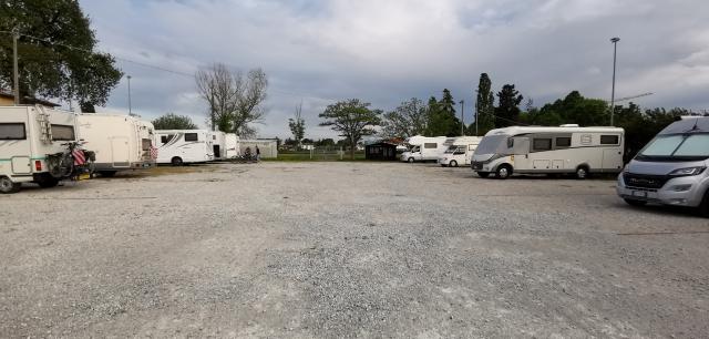 Praticamente in centro, zona centro sportivo, aperta tutto l'anno, video sorvegliata, illuminata, ingresso a pagamento automatizzato, servizi con bagni e docce calde, carico-scarico.