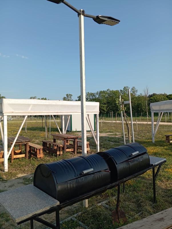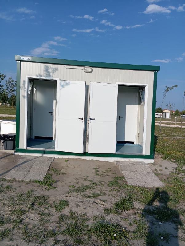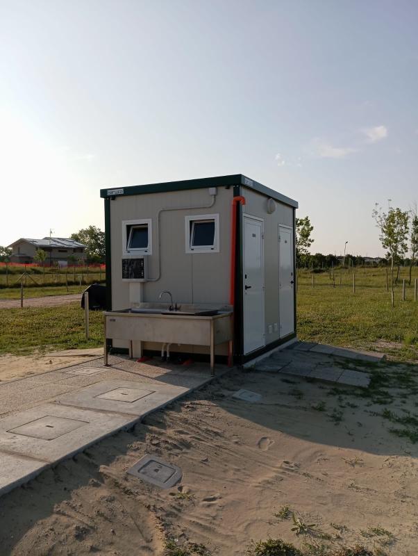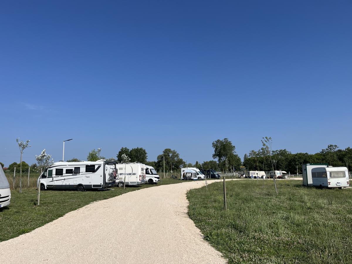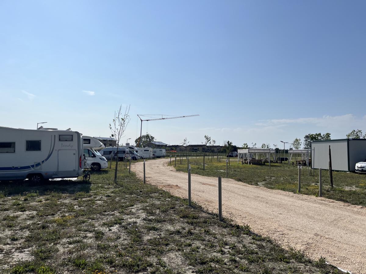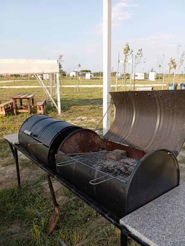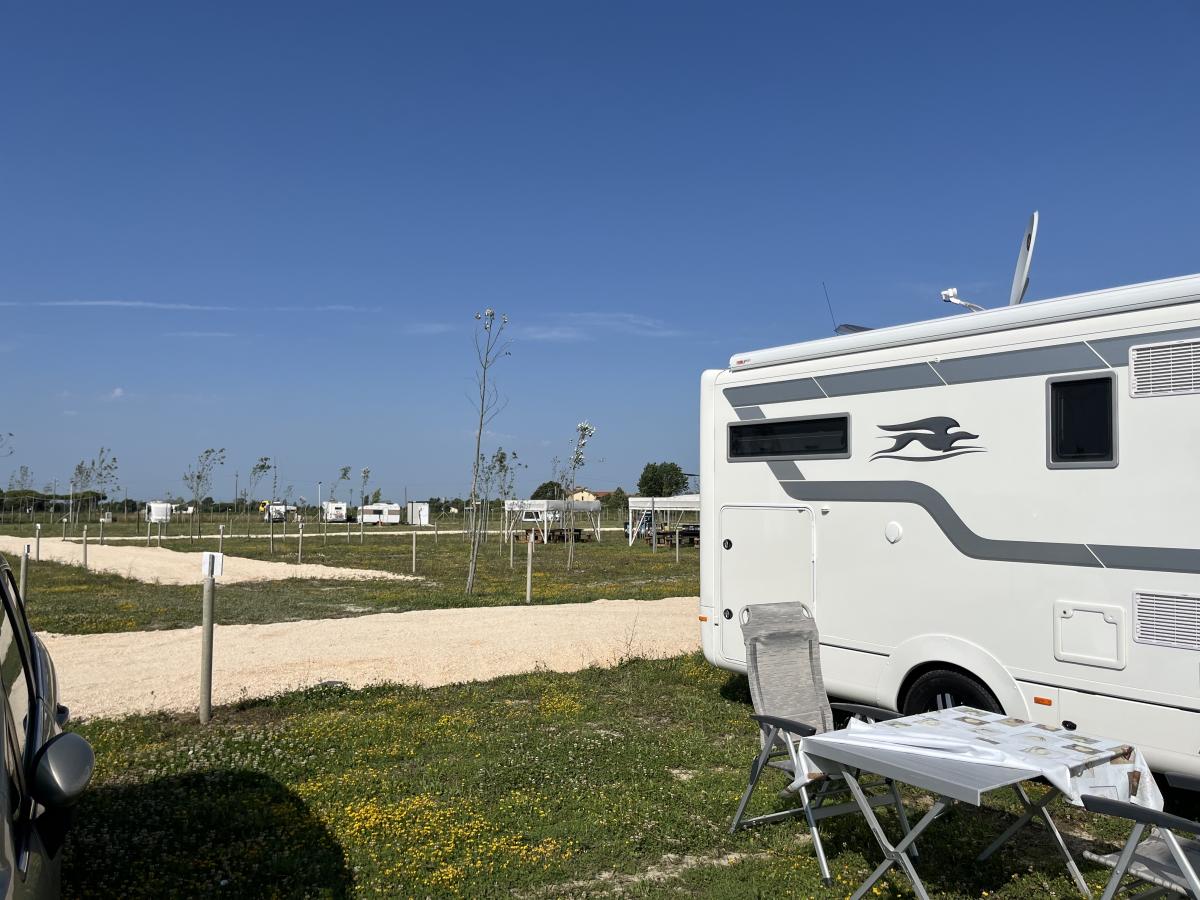 Nei pressi della pineta a 800 m dalla spiaggia, area spaziosa con tutti i servizi essenziali: carico/scarico, corrente elettrica, servizi igienici, docce, lavatrice e asciugatrice, lavastoviglie, barbecue.