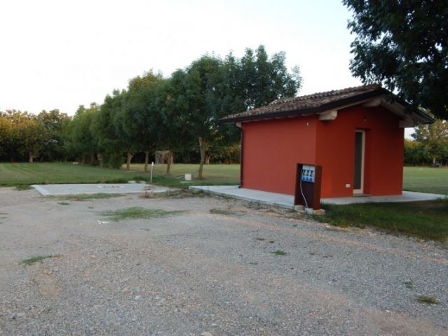 Dispone di colonnina per la corrente elettrica e dei servizi per il carico e scarico delle acque, docce e lavatoi per piatti.