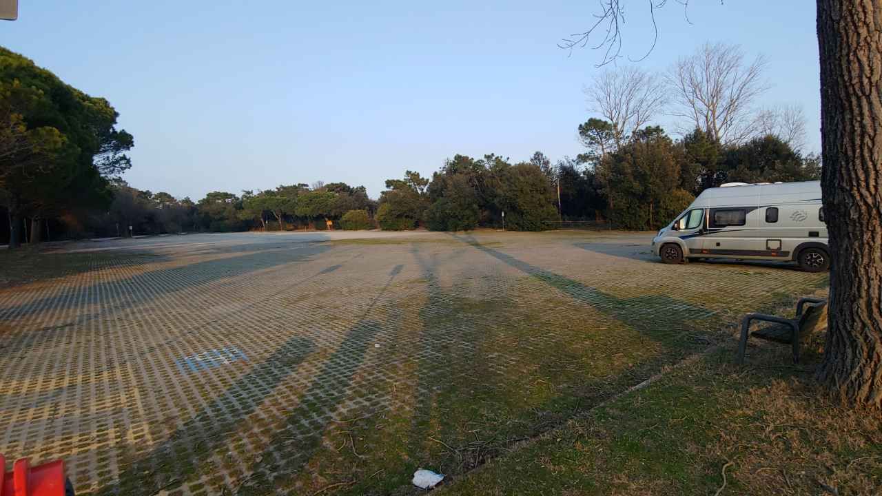 Parcheggio comodissimo per arrivare in spiaggia e per un bel giro in bici nel bosco, abbastanza tranquillo. I parcheggi per camper sono solo sulla prima e sulla terza fila, il resto è per le macchine. Quindi, attenzione alle strisce per terra!