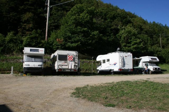 Piccola area circa 10 camper con scarico wc e carico acqua nelle colonnine 220v, docce calde.