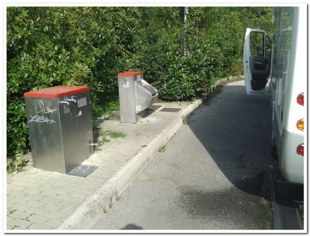 Camper service veramente comodo, fruibile e gratuito. Scarico a pozzetto grande, presa acqua a tempo, schiacciare il pulsante e aprire il rubinetto, WC-Wash per cassetta con getto d'acqua per il risciacquo. Quando siamo andati noi qualcuno non era riuscito a centrare il buco...con una griglia di 1mq! Per favore, se la fate fuori date una pulita. È uno dei CS gratis migliori, cerchiamo di mantenerlo.
