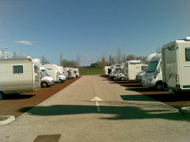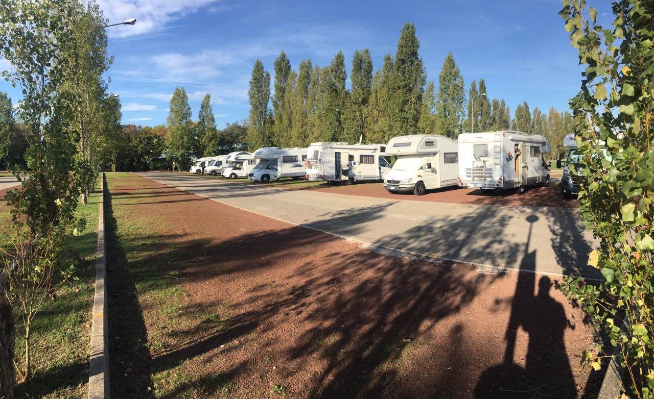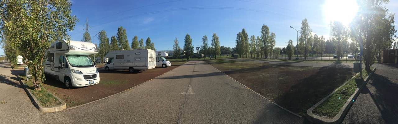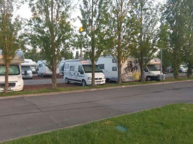 Area riservata camper a pagamento, non sorvegliata, con accesso automatizzato, sosta max 48h, dotata di 120 piazzole non ombreggiate, carico e scarico delle acque. Non ci sono collegamenti elettrici.