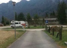Vicino al torrente Cellina e al paese, punto sosta comunale, pianeggiante, poco segnalato, con 8 piazzole su autobloccanti, camper service, allacciamento elettrico. Servita da pista ciclabile, area picnic e parco giochi. Sosta max 48h.