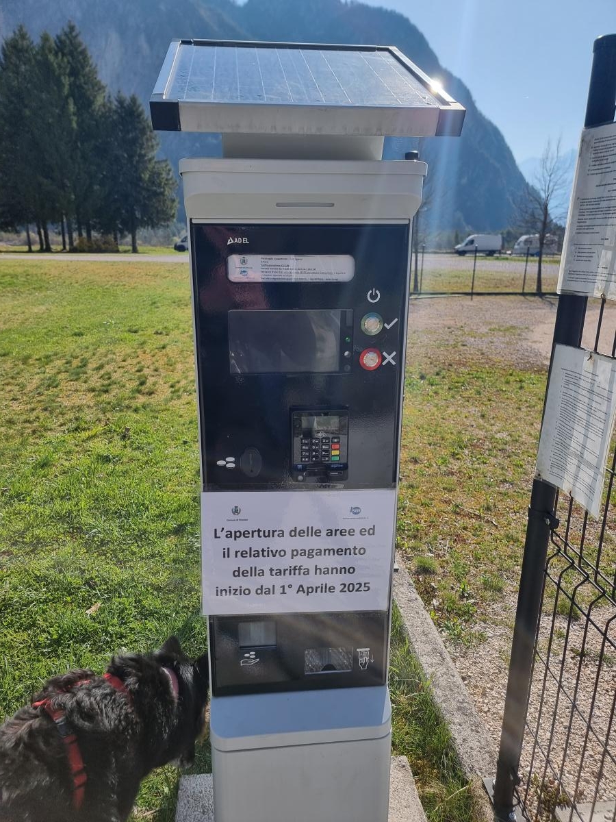 Prima volta che ci fermiamo qui, bellissimo posto, molto tranquillo, ottime le escursioni. 10€ la sosta per 24h con corrente e carico/scarico acque. Abbiamo avuto dei problemi per pagare la sosta, non accettava monete e solo carte con pagamento di prossimità, abbiamo risolto pagando direttamente in comune a due passi dal parcheggio. A fianco area pic-nic attrezzata anche con carica e-bike. Abbiamo anche un cane grossa taglia che è stato benissimo.