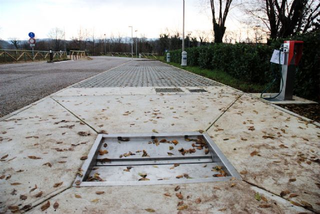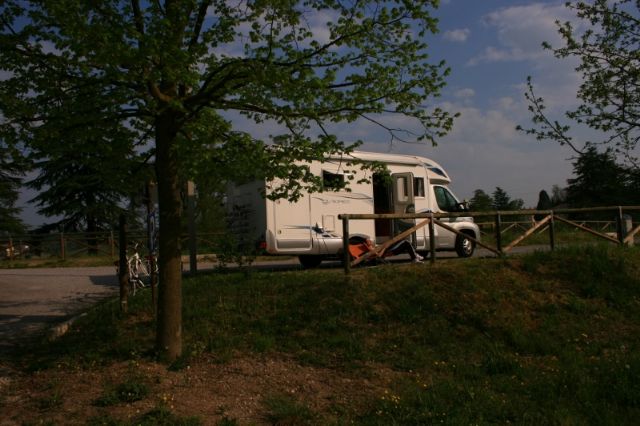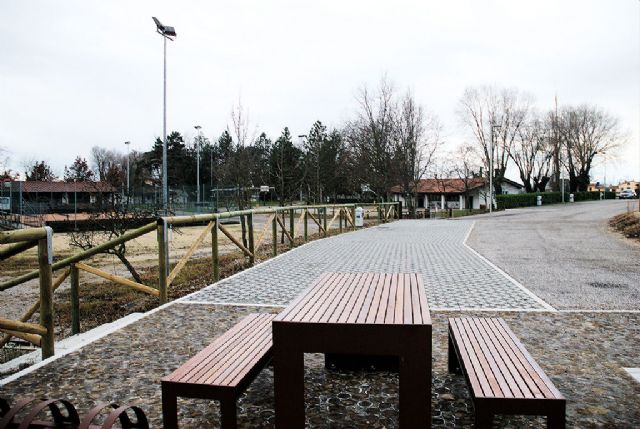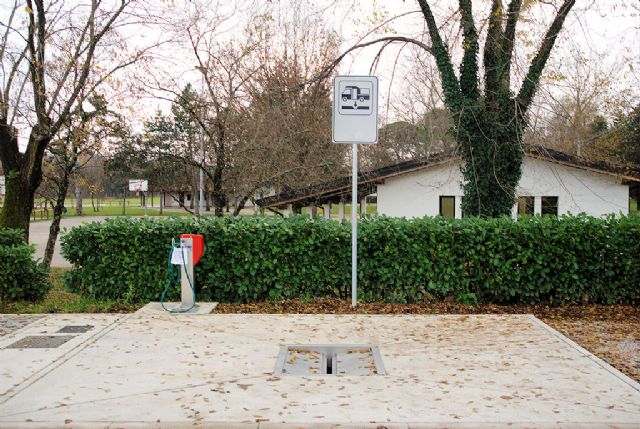 Adiacente ad area picnic, giochi e pista ciclabile, punto sosta in parco comunale con 6/7 posti, carico/scarico e colonnine elettricità.