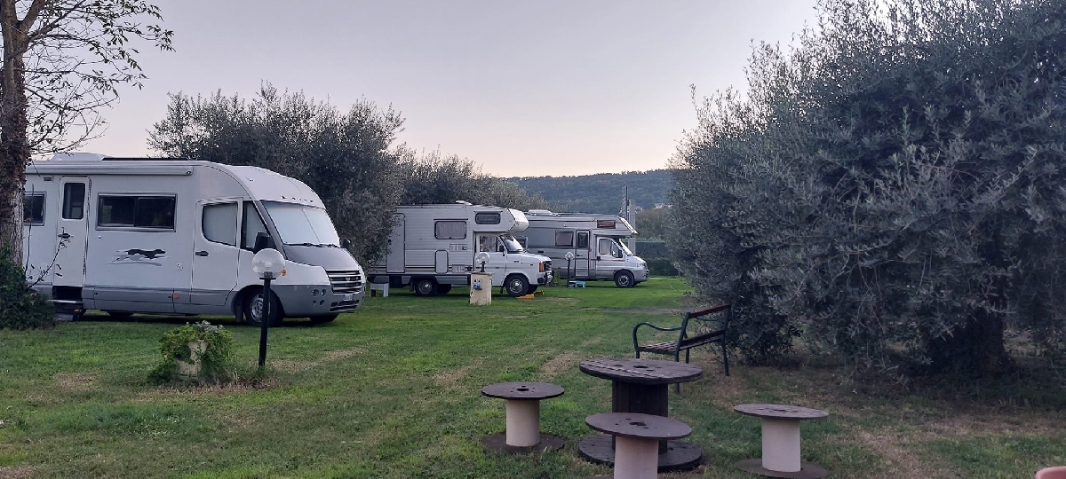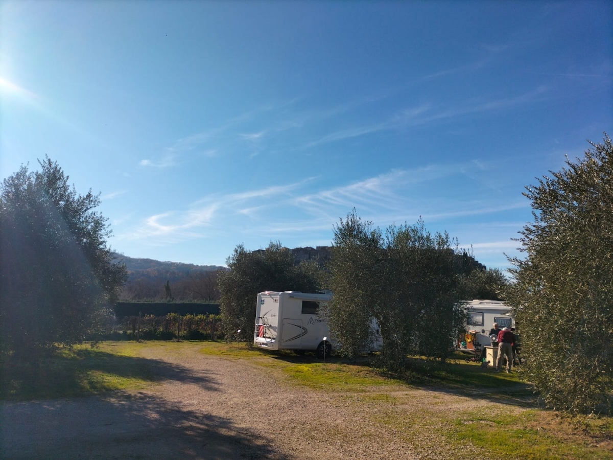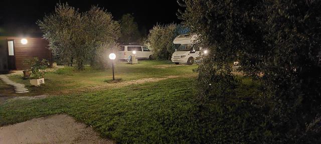 Meravigliosa sosta all'agricamper L'sola degli ulivi, un'oasi di pace e tranquillità in mezzo agli ulivi, su prato e ghiaia con davanti il panorama di Orte. Corrente e acqua in ogni piazzola, carico/scarico, bagno, spazio picnic. A 20 minuti a piedi dal paese di Orte, una bella salita finale ma fattibilissima. Gestore cordialissimo, 25 euro a notte tutto compreso. Consigliatissimo.