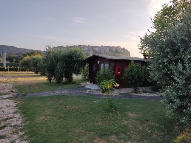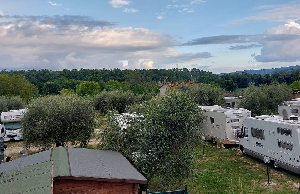 A circa 15 minuti a piedi dal centro, vicino al Tevere, area di sosta con chiusura automatizzata del cancello, dotata di 15 piazzole su erba circondate da ulivi, colonnine idriche ed elettriche, bagni con doccia calda, zona lavaggio stoviglie, scarico delle acque chiare e scure e area picnic. Vendita prodotti tipici: olio extra vergine e tartufi.