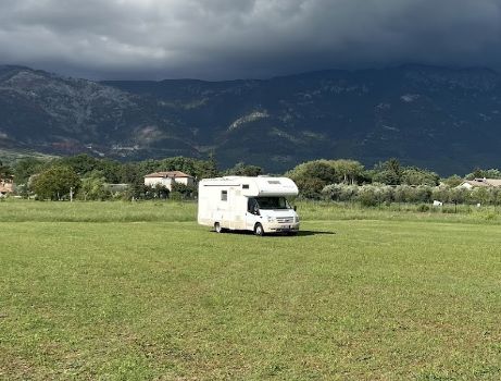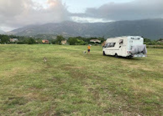 Sul confine con il Parco Nazionale D'Abruzzo Lazio e Molise e a 1,2 km dal borgo, ampio parcheggio adiacente il ristorante/pizzeria omonimo (a conduzione familiare) con circa un centinaio di posti su prato per camper, tende e caravan, non delimitate, non ombreggiate, allaccio elettrico, possibilità di carico acqua e scarico delle acque grigie, servizi igienici all'interno del ristorante.