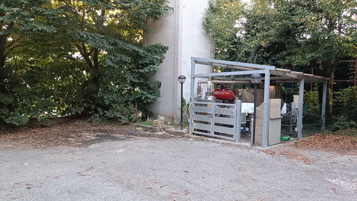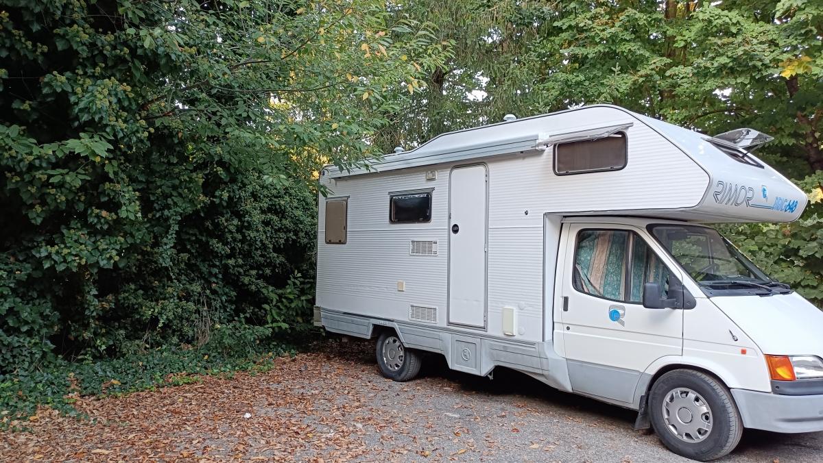 A 500 m dal centro, piccola area sosta illuminata, con 8 posti, carico e scarico