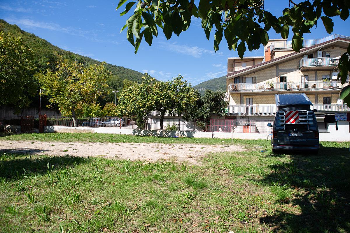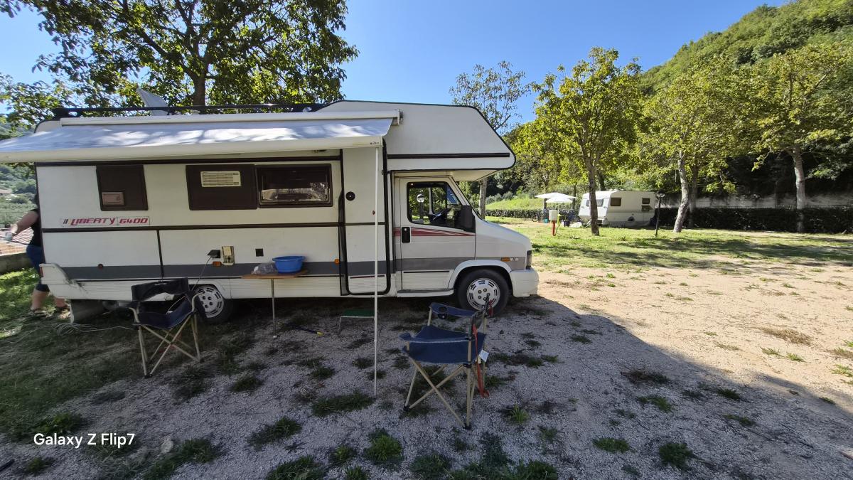 Tranquilla area camper recintata presso il Prosciuttificio Ciociaro, dotata di carico/scarico, allaccio elettrico, servizi igienici, docce calde.