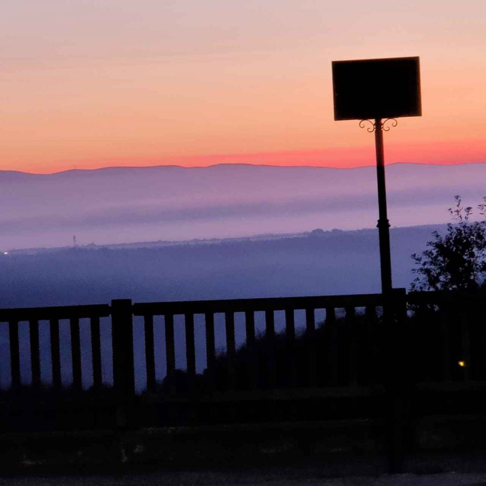 Al mattino presto ti rendi conto dove sei e il posto è una cartolina di noi e del Moai che guardiamo il Borgo di Vitorchiano. Un bravo alla Municipalità.