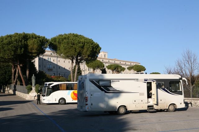 Tranquilla area di sosta, gratuita dalle 19,00 fino alle 9,30 circa del mattino, quando riapre l'abbazia. La sosta diurna è invece di 8 euro a prescindere dal numero di ore di sosta. Durante la notte è consentito parcheggiare i camper sul piazzale delle auto, sicuramente meno pendente. Molto tranquilla e silenziosa ma nessun servizio neanche nelle immediate vicinanze.