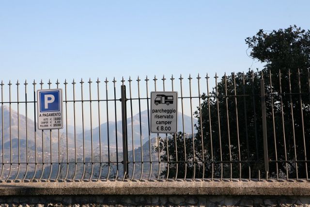 Comodo parcheggio a pagamento tariffa camper € 8,00 per la giornata da pagare all'arrivo agli addetti, gratuito la notte, nessun servizio, solo una fontanella con acqua potabile. Silenzioso ma la mattina alle 4,30 cominciano a suonare le campane.
