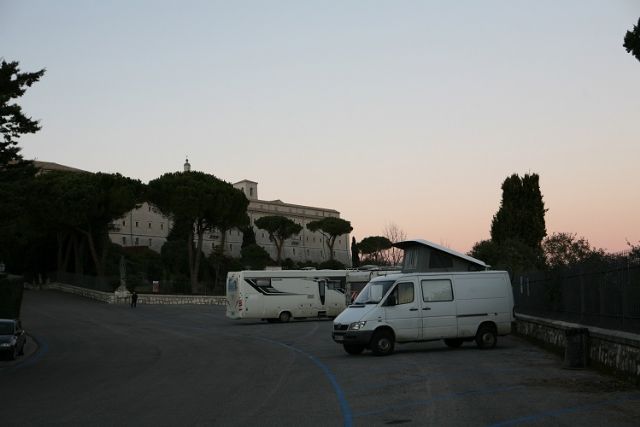 Punto sosta suggestivo e tranquillo (anche se le campane suonano molto presto). In accordo col parcheggiatore abbiamo perrnottato nella zona riservata alle auto, più pianeggiante.