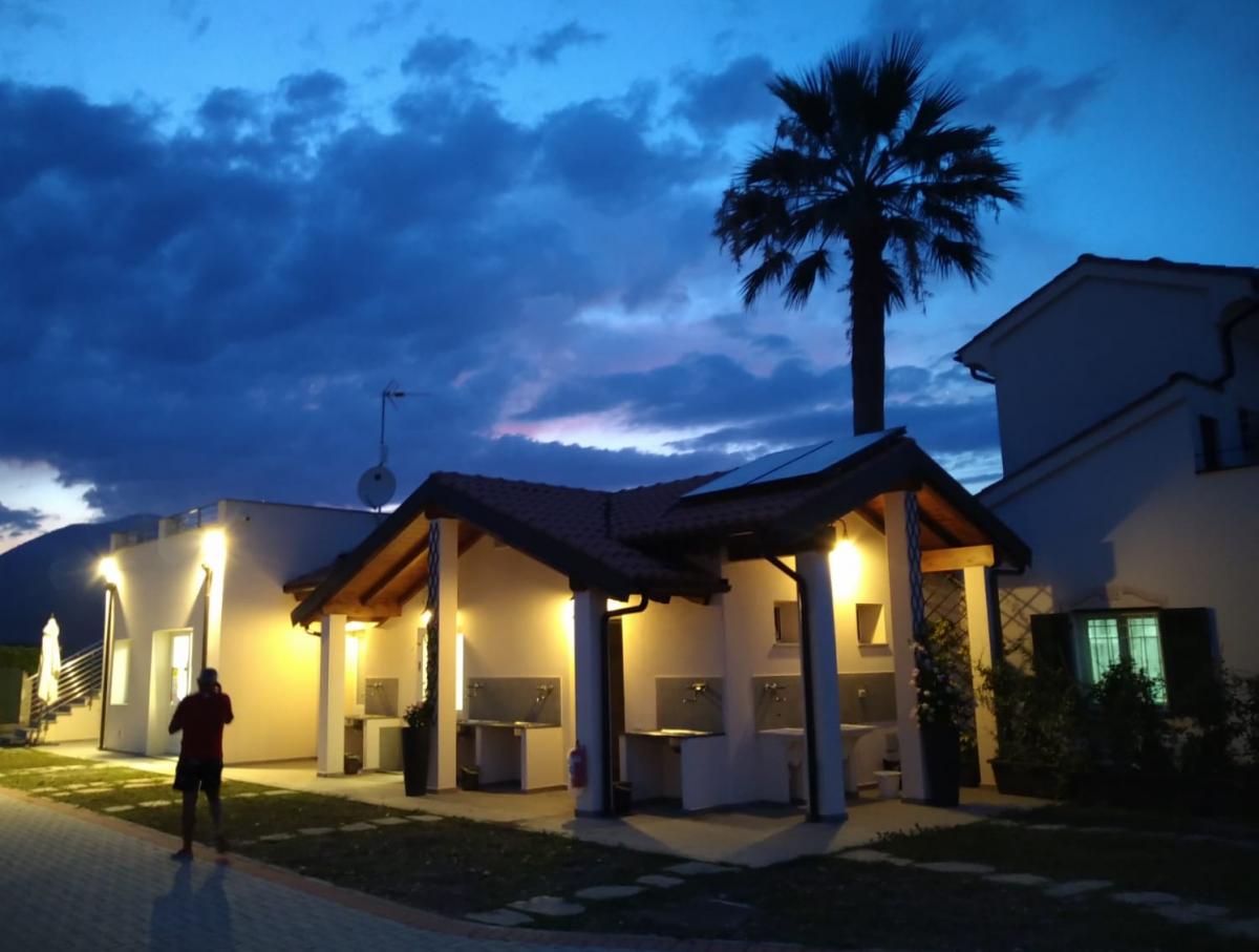 Dispone di allacciamento elettrico, servizi igienici, docce calde, lavelli per stoviglie e indumenti, camper service.