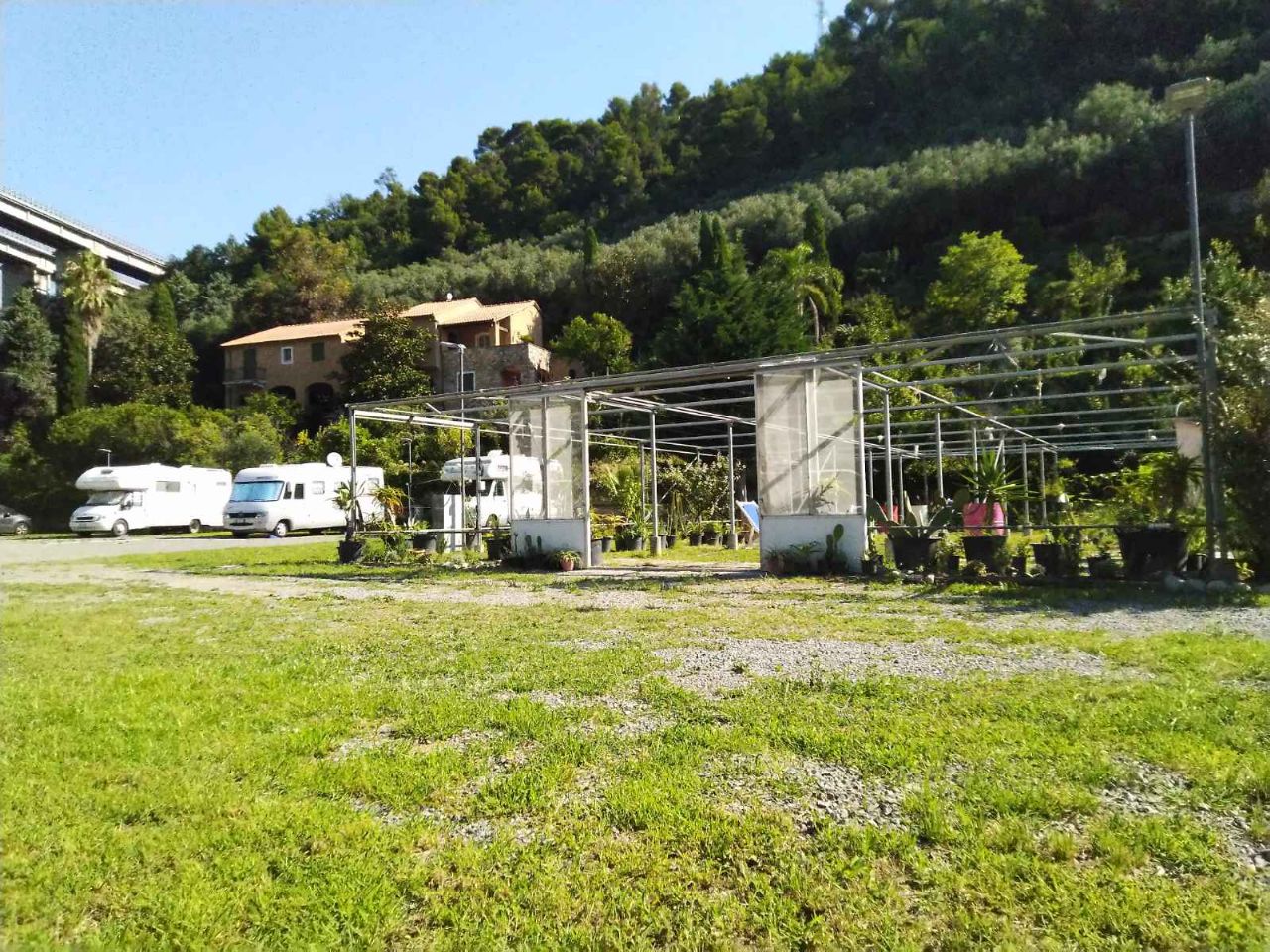 Area sosta nuova, dotata di tutto: carico/scarico, corrente, WC chimico per ora (i proprietari dicono che in futuro provvederanno a metterli in muratura), doccia (all'aperto però), piazzole in erba. Presente anche un servizio navetta (1,5 € a persona) per il centro città (Pietra Ligure)/mare. Dista circa 2 km dal centro/mare, purtroppo la strada non è bellissima da percorrere a piedi/bici in quanto non c'è il marciapiede. A circa 200m (anche qui strada senza marciapiede) c'è una panetteria/caffetteria. PRO: proprietari disponibili/servizio navetta. CONTRO: strada senza marciapiede (lacuna ovviamente non dovuta alla struttura e coperta dal servizio navetta).