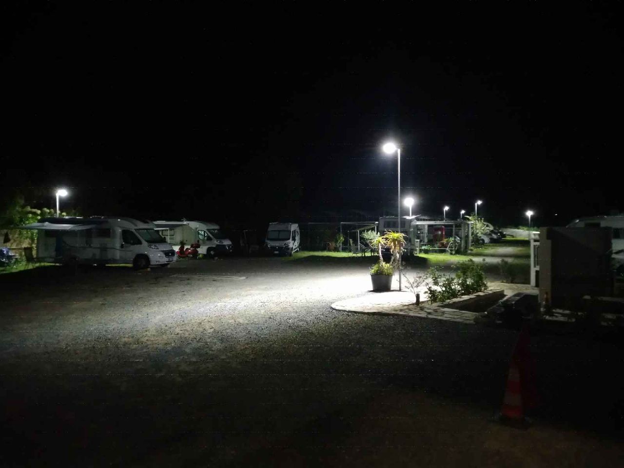 Un'area a misura di camper in generale direi "ariosa", spazi adeguati per stare con il tendalino aperto, e non è poco! Servizi efficienti e docce calde ora a pagamento: €1/3minuti. Certo la distanza c'è, siamo sui 2 km, e l'autostrada non è proprio silenziosa, ma aggiungendo la disponibilità del gestore e la possibilità di avere i prodotti dell'orto a portata di mano, posso dire che noi siamo stati bene.