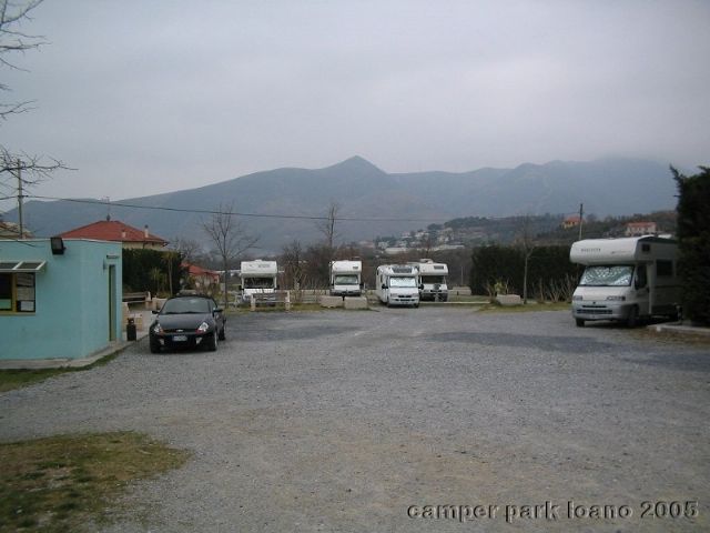 'Camper Park' comunale in via Silvio Amico, 44 posti su ghiaia, con acqua e energia elettrica per ogni posto, c/o campo sportivo in direzione Boissano, a 2 Km dal mare, servizio navetta comunale in certi periodi, mare accessibile anche per via Fornaci-via Martiri delle Foibe