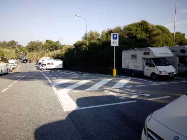 Area sosta gratuita con scarico e carico, consentita la sosta per max 15 gg, la polizia locale passa a prendere i numeri di targa.Nei pressi, parco giochi per bambini e ristorante economico; centro e lungomare a 15 minuti.