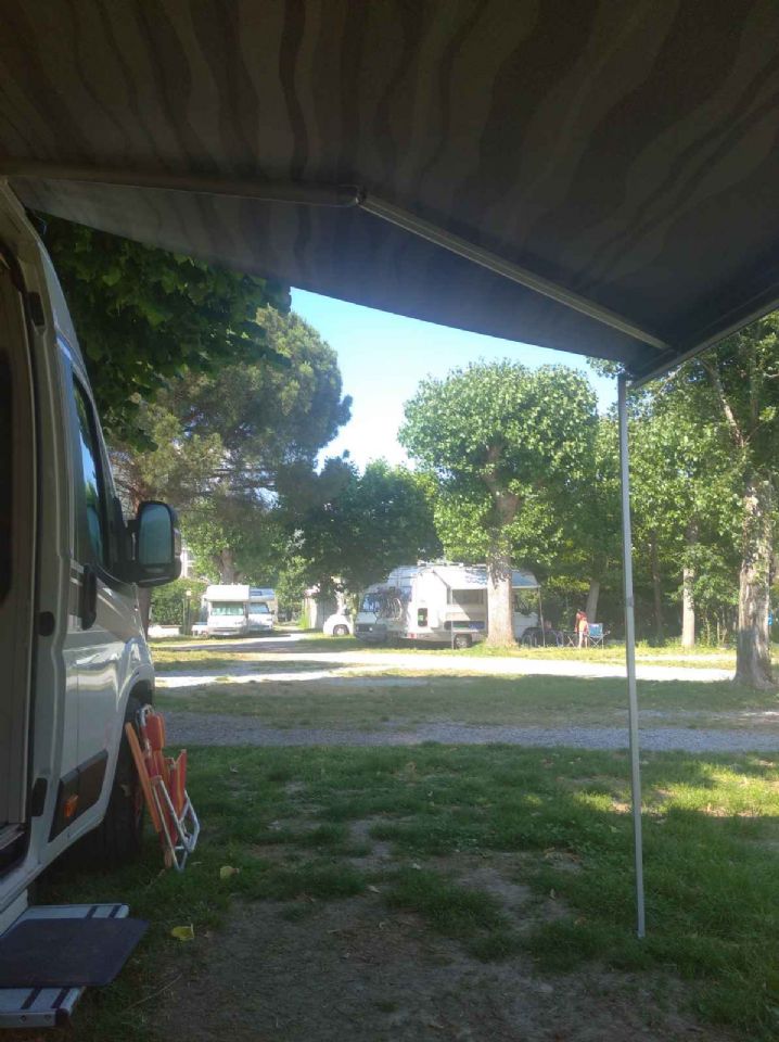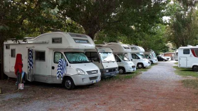 A 150 metri dal mare e dal centro con 60 posti in parte alberati, allaccio elettrico.