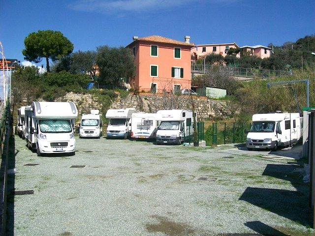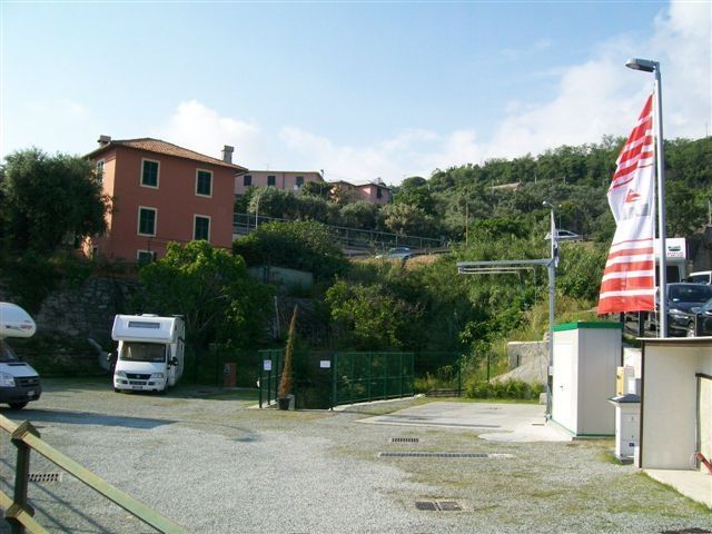 Nelle vicinanze del casello autostradale di Genova Nervi e non lontana dall'Ospedale Gaslini, area sosta con accesso automatizzato, a pagamento (in contanti) con macchinetta, 10 piazzole non prenotabili, acqua, elettricità, C/S a gettoni, lavaggio camper.