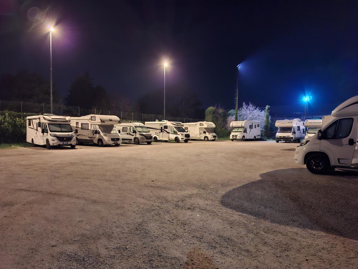 Parcheggio a pagamento senza alcun servizio. La multa in caso di mancato pagamento è di 29 euro, il prezzo del parcheggio è di € 2,70/ora, fate voi i conti, se dovete rimanere più di 10 ore conviene la multa! Ci sono i cassonetti per la differenziata immediatamente fuori, ma chiusi a chiave (non vogliono proprio che noi camperisti differenziamo). Ci sono stato in camper con una coppia di amici in macchina camperizzata, essendo che in due occupavamo un solo parcheggio, ci siamo messi in fila pagando però entrambi tariffa piena. Loro hanno trovato la multa sul parabrezza, per l'appunto di 29 euro (più il parcheggio pagato). Abbiamo interpellato la polizia locale che se n'è lavata le mani dicendo di mandare una mail. Per il resto il parcheggio è in ghiaia, completamente al sole, normalmente mi aspetterei 15/20 euro al giorno considerando la zona turistica, invece pagando per 24 ore si spendono ben 64,80 euro!