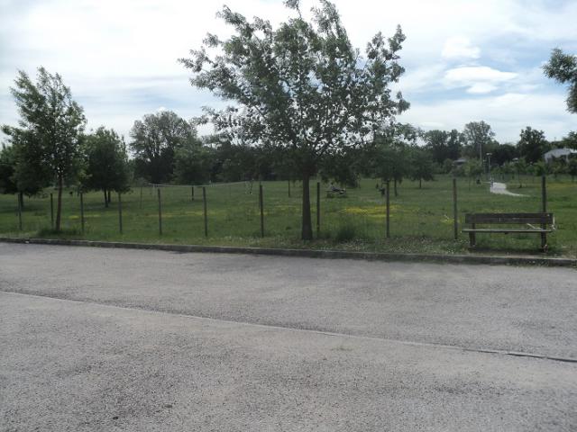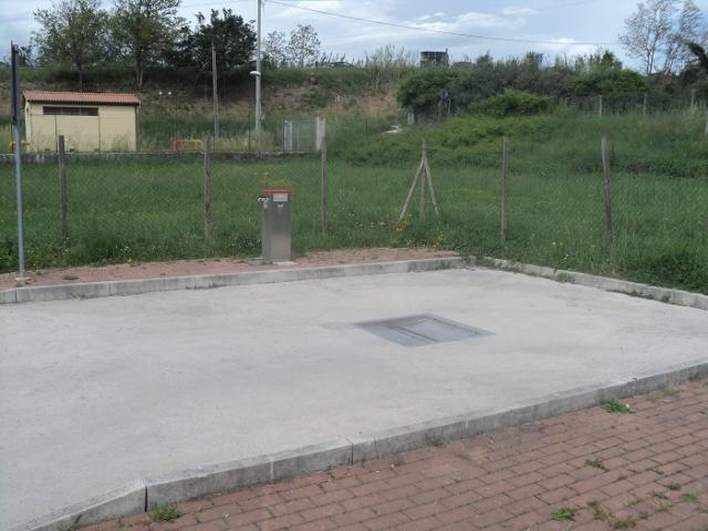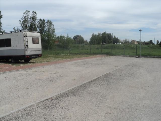 Adiacente al parco fluviale, area sosta su autobloccanti con 7 posti camper, colonnine allaccio elettrico, carico/scarico, bagni, doccia e lavabo.