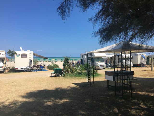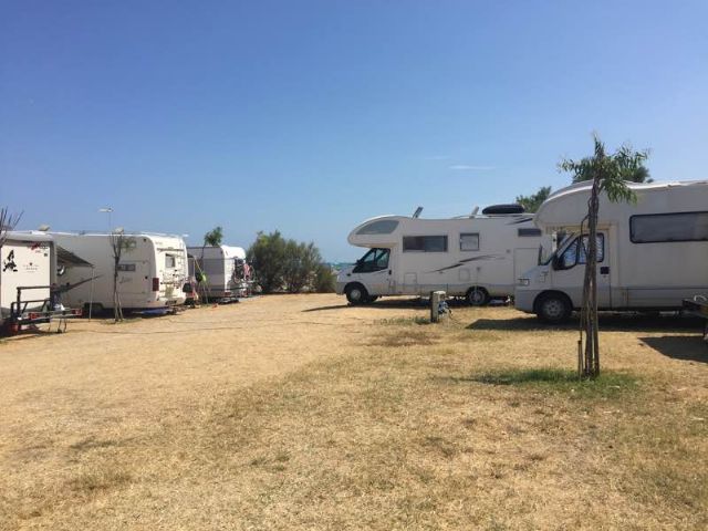 Area camper direttamente sul mare con accesso diretto alla spiaggia e dotata di tutti i servizi essenziali quali elettricità, servizi igienici, docce calde, lavabi, carico e scarico acque grigie, area barbecue, servizio spiaggia, bar, venditori locali (frutta/pane/pesce). Atmosfera amichevole e cani ammessi. Un luogo ideale per una vacanza rilassante, come sosta sulla strada verso sud o per prendere il traghetto per Bari o Ancona.