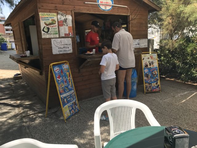Posto tranquillo spiaggia non affollata (agosto) in ciottolato, di fronte all'area. Gestori cordiali, iniziative quotidiane di gioco presso il loro bar. Quattro docce a gettone, bagni un po' fatiscenti. Area limitrofe con pochi servizi. In loco vengono rivenditori di cibo e frutta verdura locali. Servizio di pizza a domicilio.
