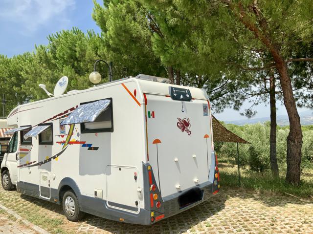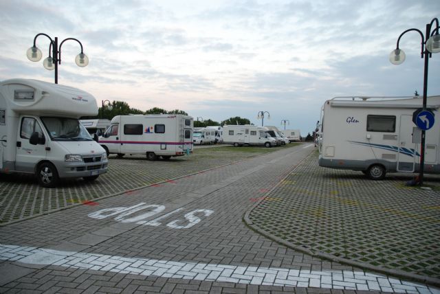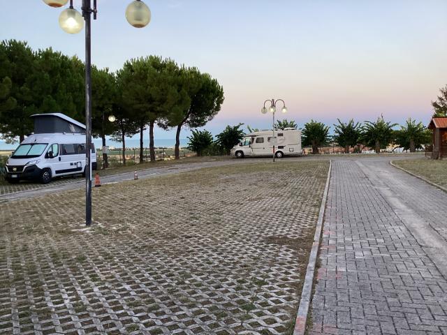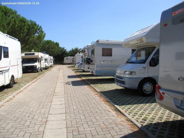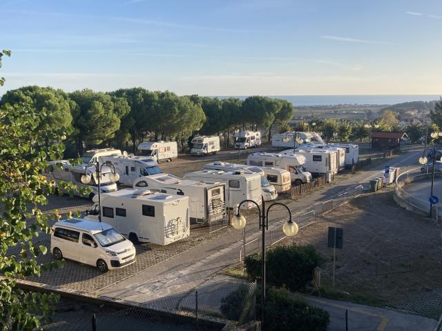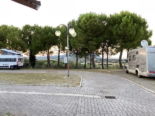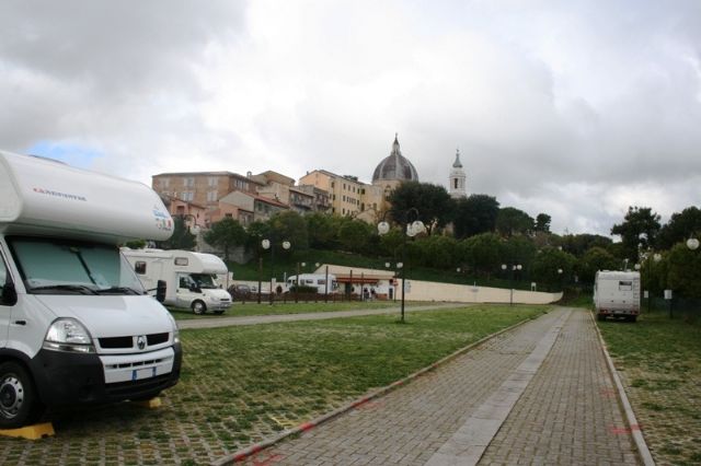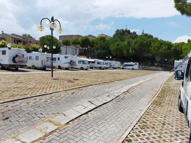 L’area è strategicamente centrale rispetto all’abitato, praticamente alle spalle della basilica. Non ha sufficienti allacci elettrici per tutti i posti disponibili, il camper service è facilmente usufruibile, è assolata e con scarsa ventilazione. In caso di pienone impossibile aprire verande o utilizzare tavoli all'esterno. In tal caso migliori i posti longitudinali. I servizi erano chiusi, causa COVID.
